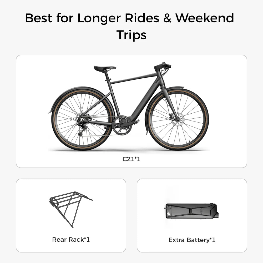 The Fiido E-Gravel C21 embodies the perfect blend of urban style and practical performance. With a payload capacity of 264.6 lbs (120 kg), it accommodates riders and cargo effortlessly. Its lightweight yet durable construction makes it easy to carry upstairs or load into a car rack. The integration of advanced technology, premium materials, and refined geometry ensures a superior riding experience that caters to both daily commuters and weekend adventurers.